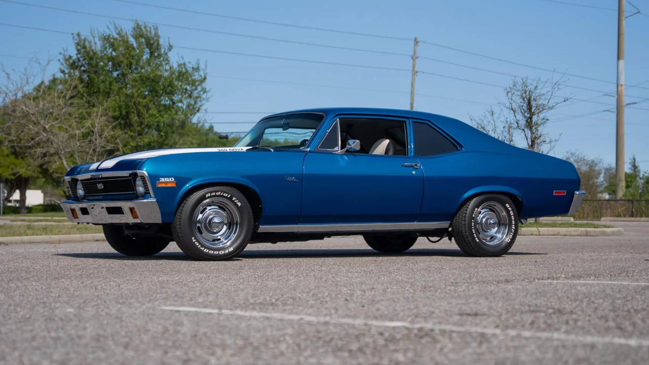 Finished in a striking custom blue exterior over a black-and-white interior, the car has the kind of presence that turns heads without trying too hard. Its clean body lines and aggressive stance highlight why Novas have long been favorites among builders and collectors alike.