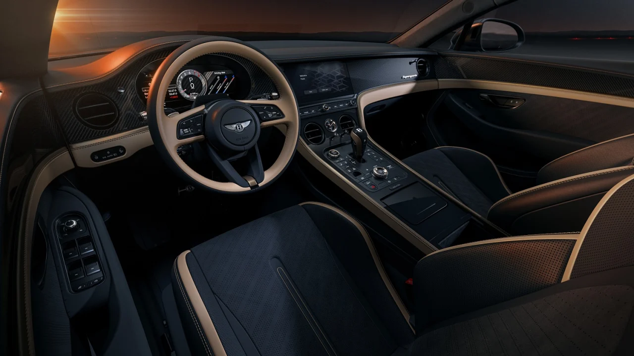 Bentley even put the interior on a diet. “Monotone, duo-tone and tri-tone interiors are available, with extensive use of leather, Dinamica and carbon fibre for a performance-focused space,” but none of them have rear seats. Bentley tossed those out and filled the space with carbon fiber and leather.