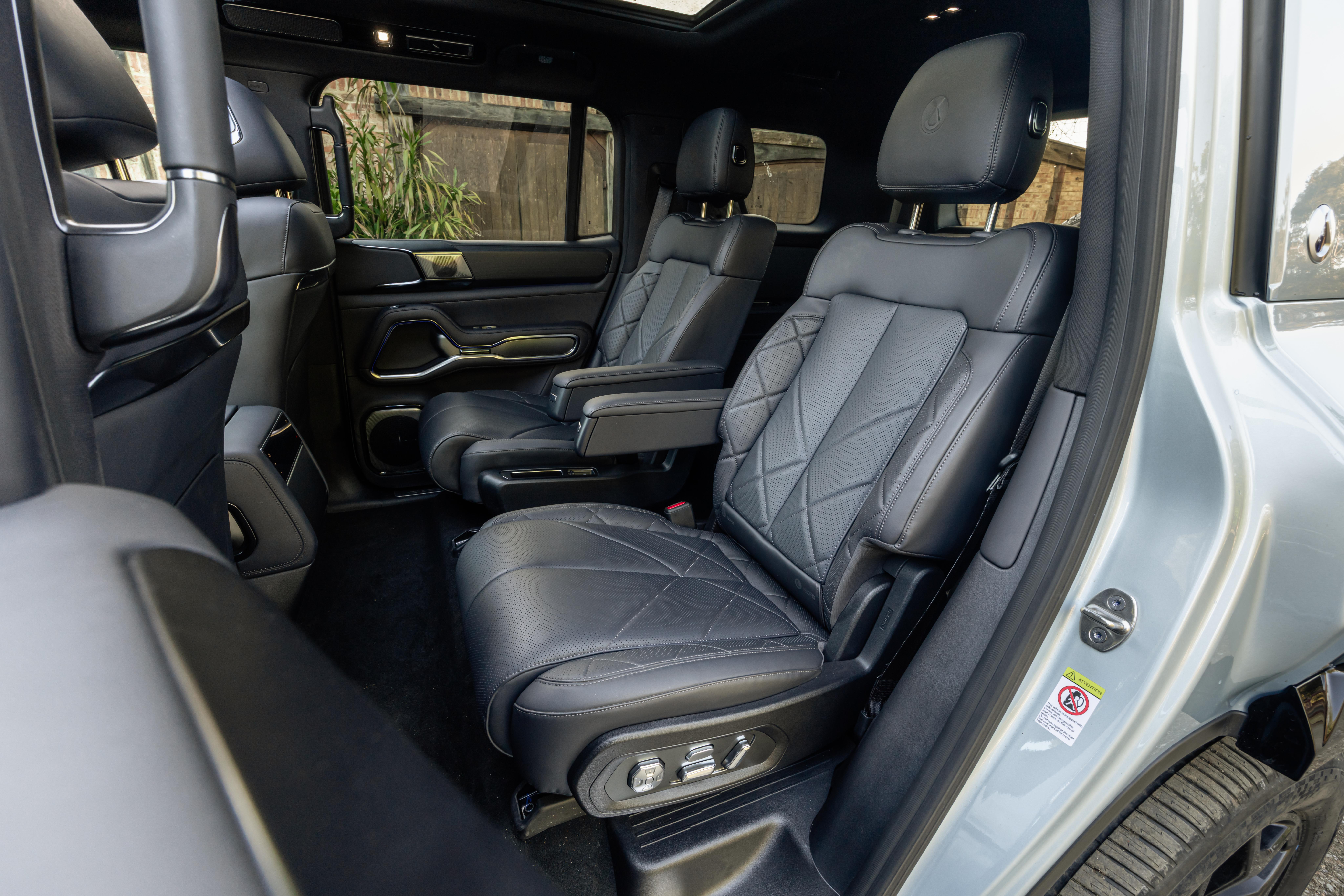 Funnily enough, front-row occupants can adjust all seats in the second and third rows via the infotainment system, which isn’t great if you’re riding behind people who like a prank.