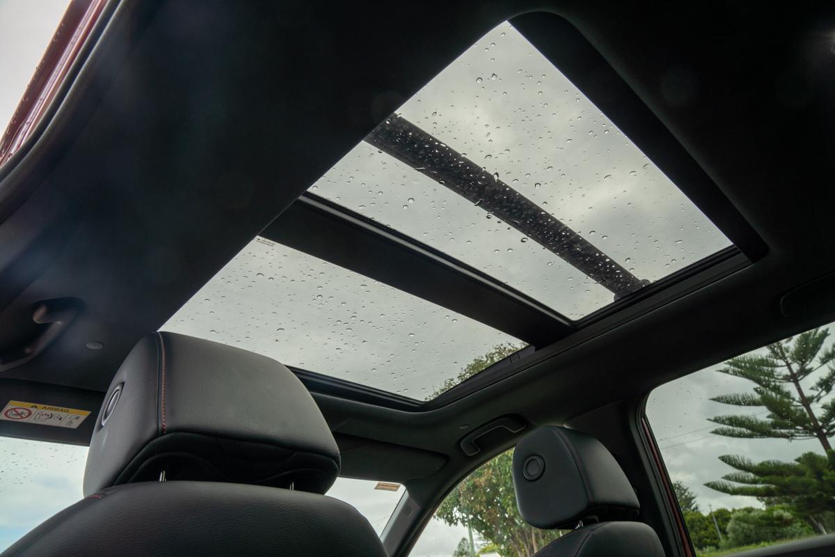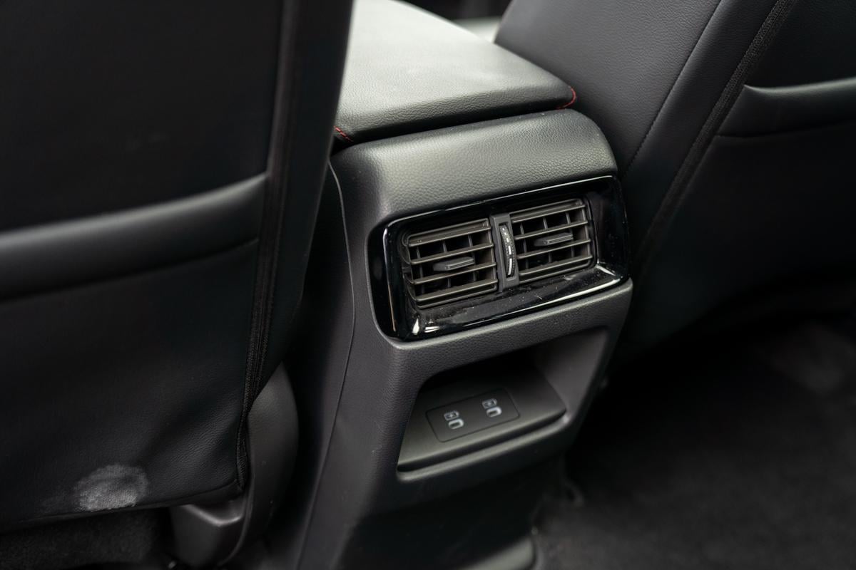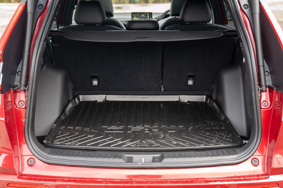 For those in the back, there is generous legroom for outboard seat occupants, adjustable air vents, two USB-C power outlets, and a flip-down armrest with cupholders. It’s super-spacious for two but the raised transmission tunnel in the centre restricts the middle seat to little ones.