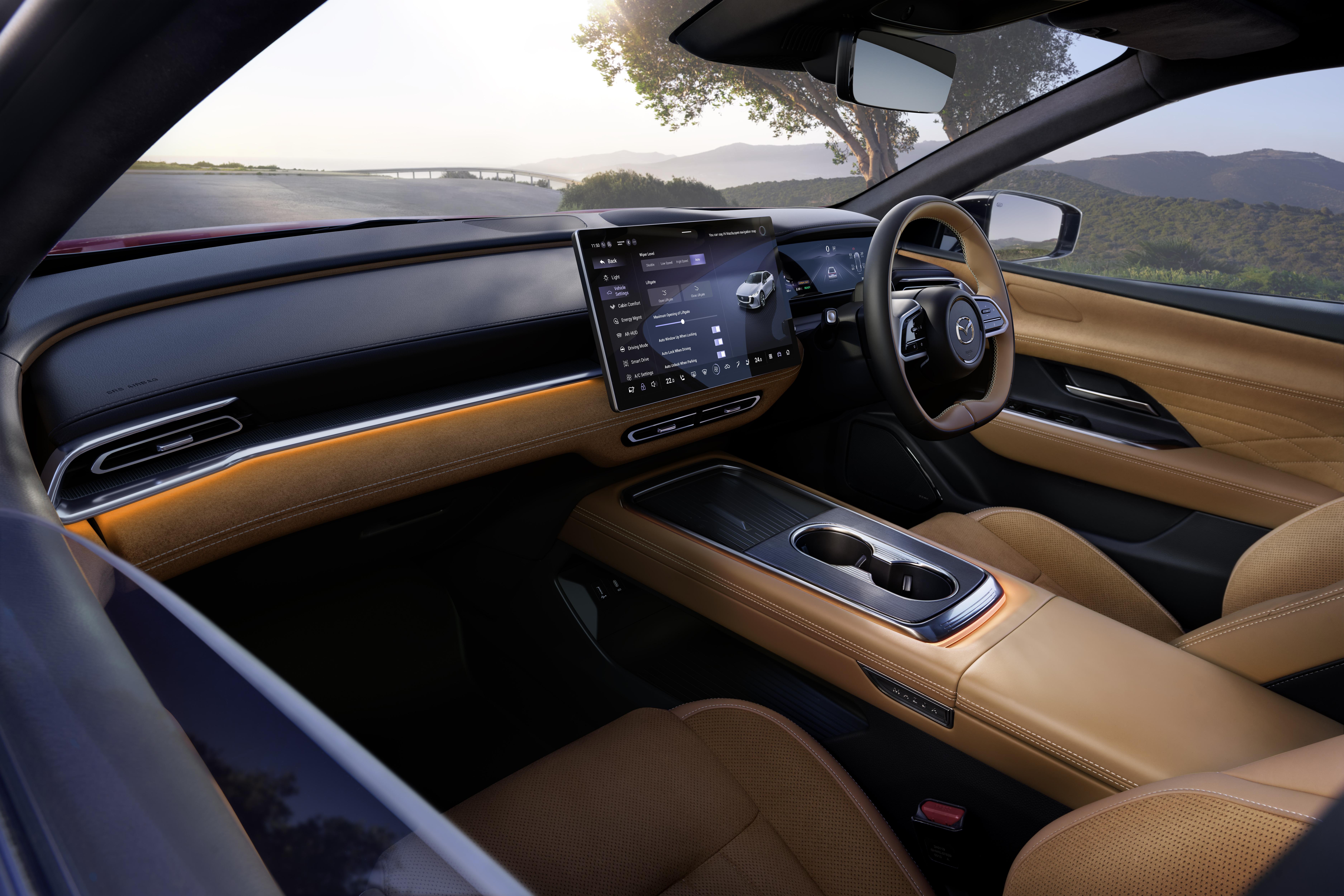 The Mazda 6e is the first model from the Japanese brand in Australia to offer a Bluetooth key, and its Mazda 6e app allows for remote adjustment of the climate control, windows and locks, among other functions.