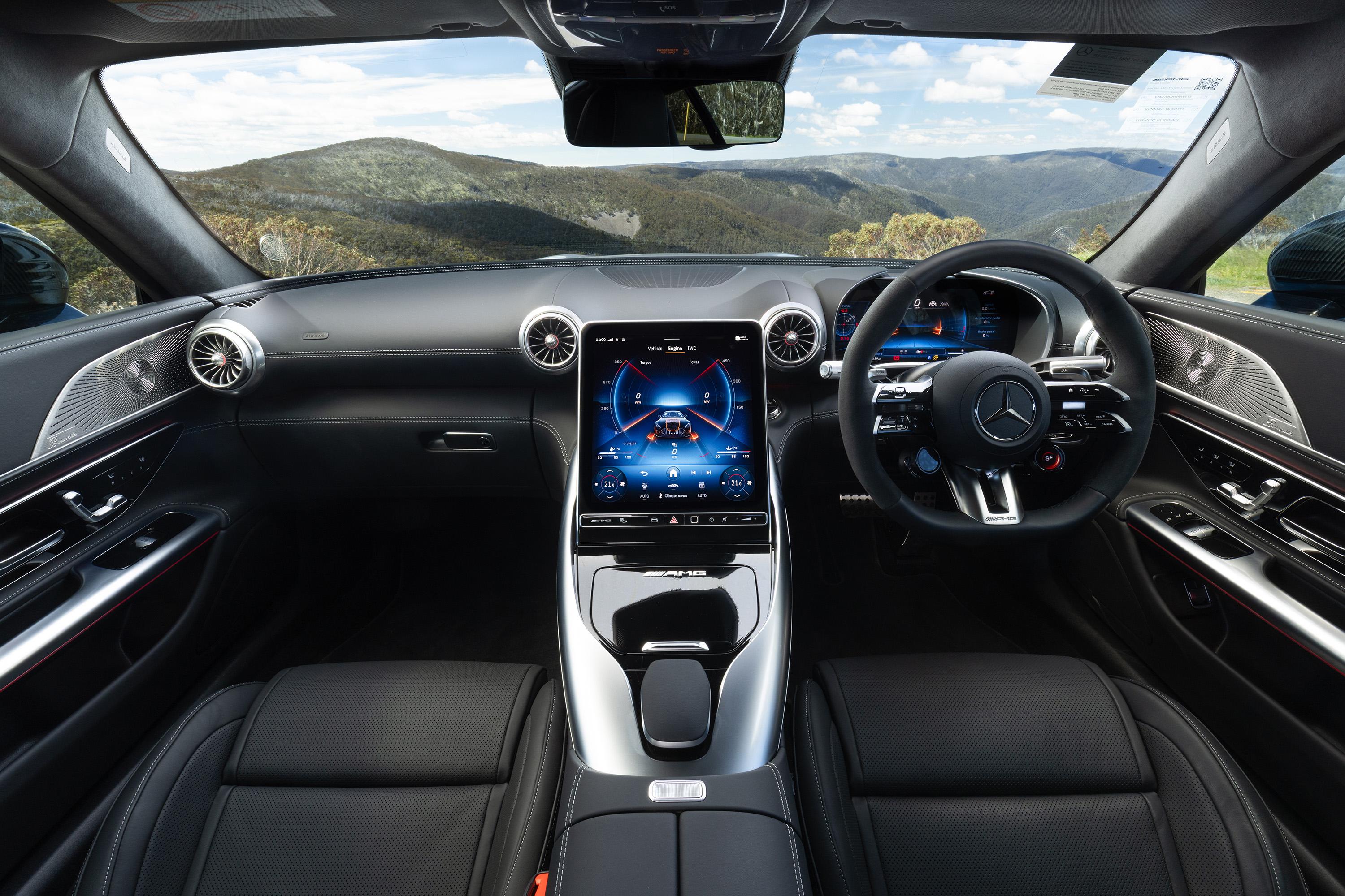 No surprises here: the Pro has the full go-fast treatment inside, where it builds on the standard GT63’s already-special cabin with the AMG Exterior Carbon Fibre package extending to the interior.