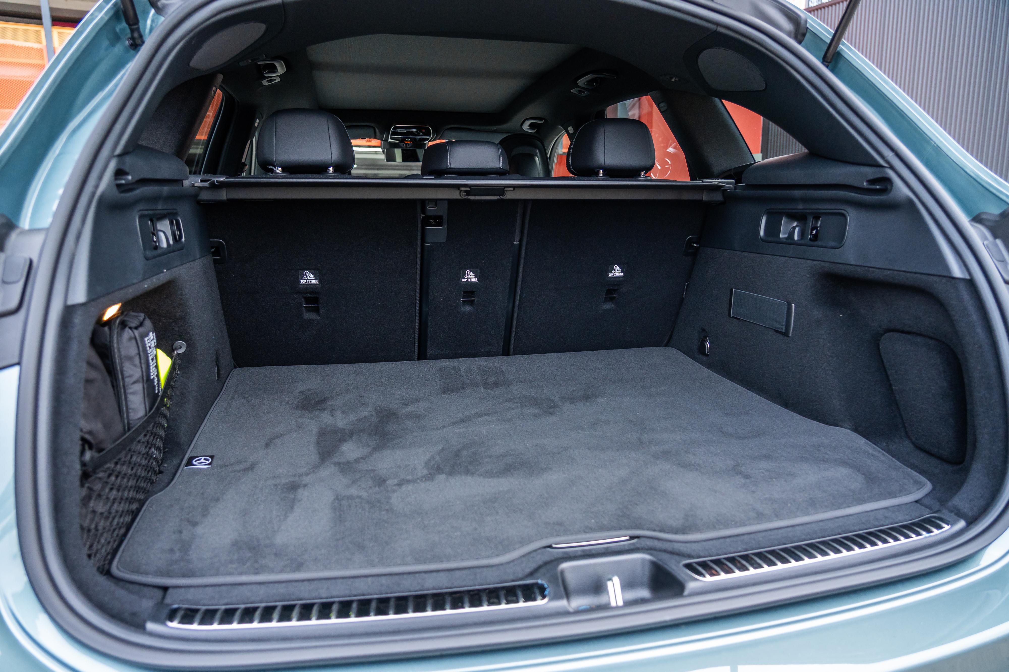 While amenities aren’t particularly generous, rear-seat occupants benefit from air vents on the back of the centre console and a padded fold-down armrest with cupholders. It’s disappointing there are no USB outlets here, which is a bizarre omission given the GLC’s family-oriented purpose and, again, its price.