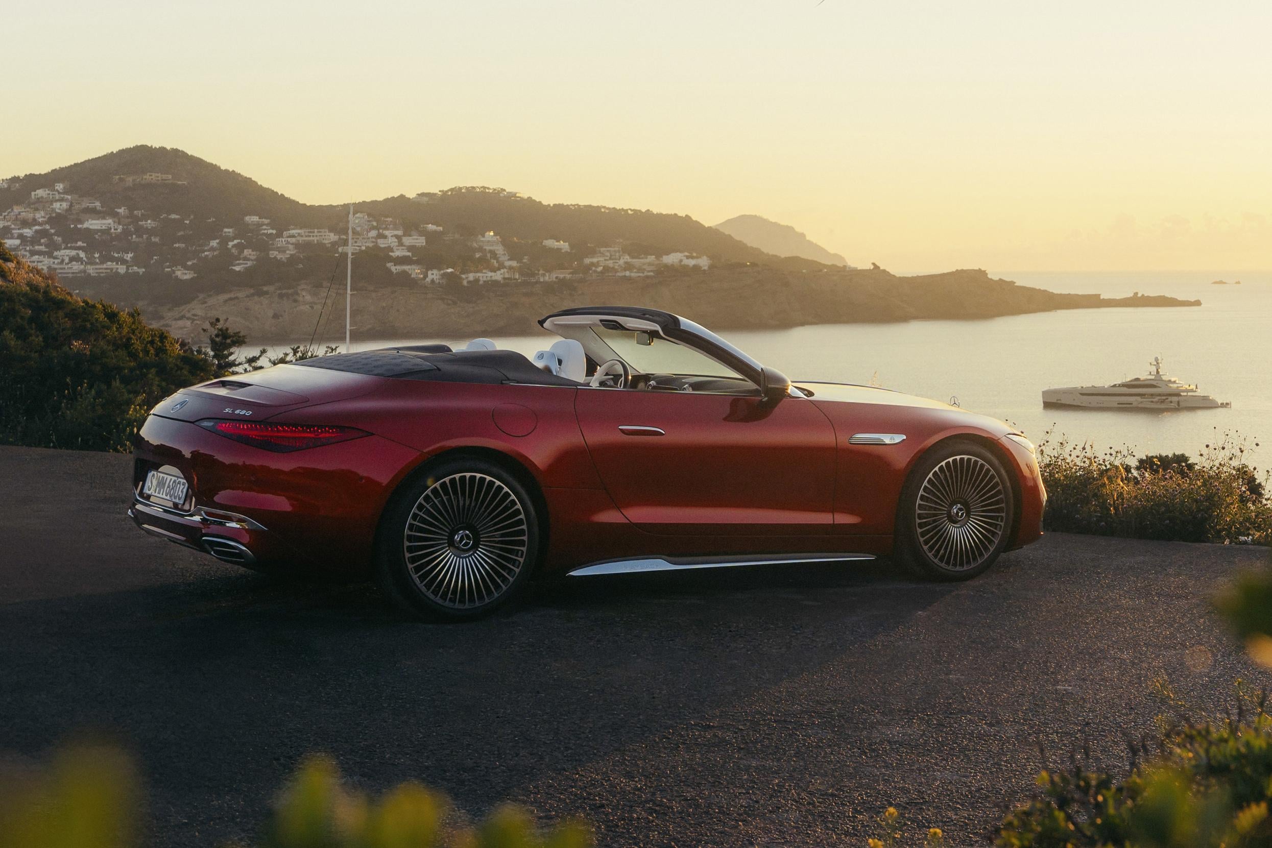 Positioned at the top of the SL lineup and billed as the sportiest Mercedes-Maybach model yet, the SL680 combines the same V8 engine performance offered by the Mercedes-AMG SL63 ($383,700 plus ORCs) but adds even more open-top luxury and a big dose of bespoke detailing.