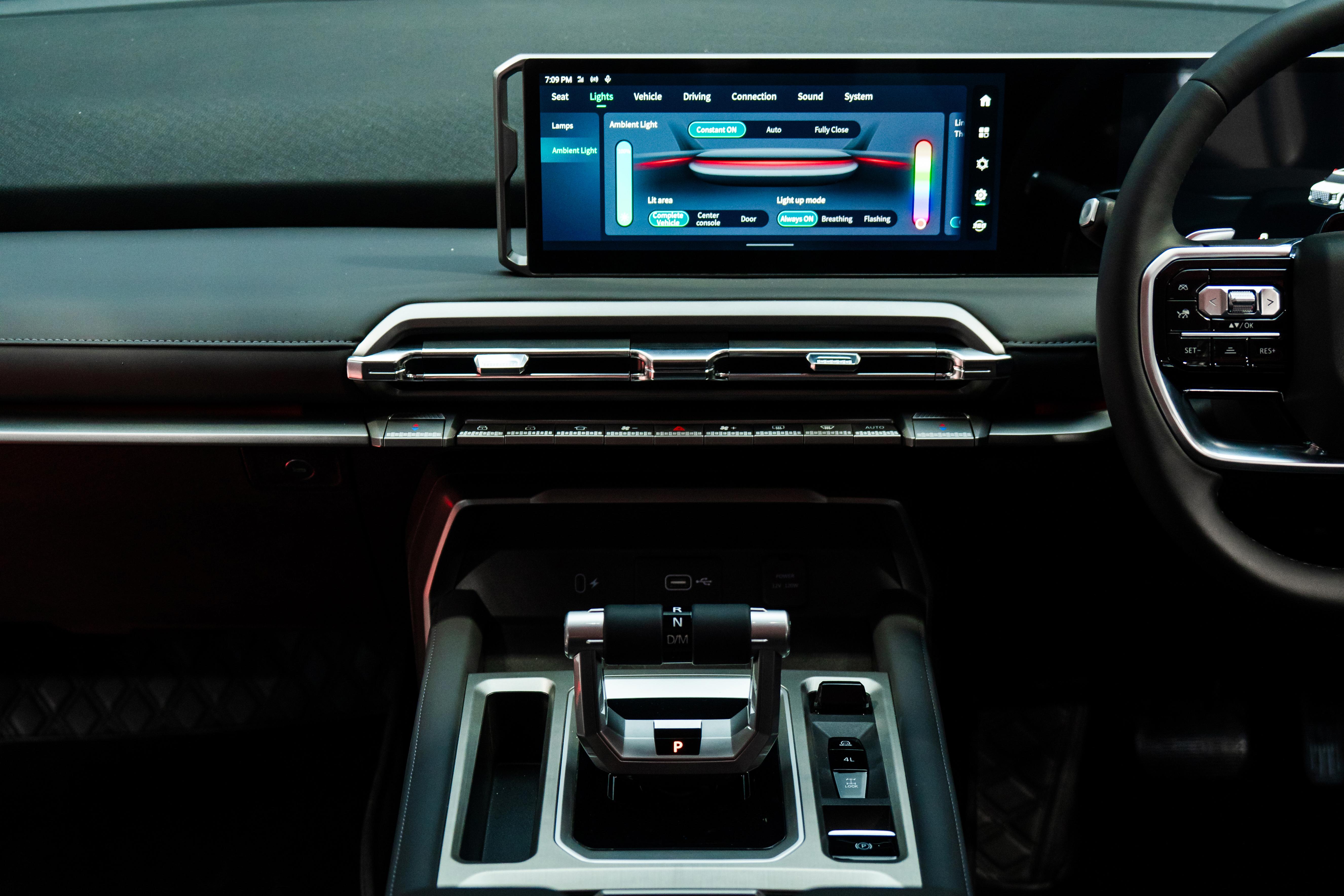 The transmission has both a traditional gear lever and paddle shifters on the steering wheel, and there are three unique modes for highway driving (Eco, Normal, and Sport), plus four tailored off-road settings – Mud, Snow, Sand and Tow, plus a custom mode.