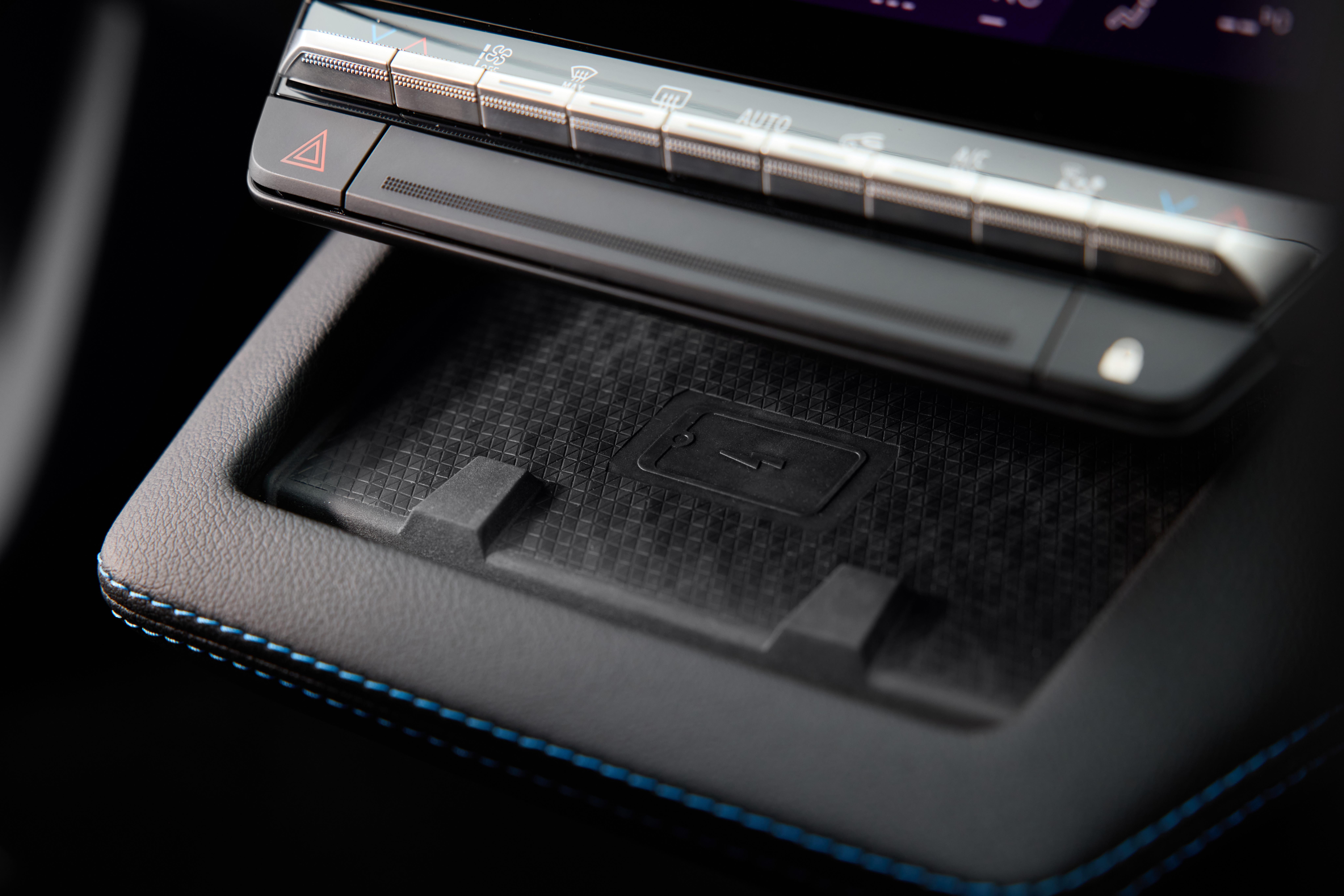Storage-wise, the Scenic is well-appointed. Below the infotainment display is a ‘floating’ tray with a wireless phone charger, while further back is a ‘floating’ armrest featuring a coin tray, two USB-C ports and a deep storage box.