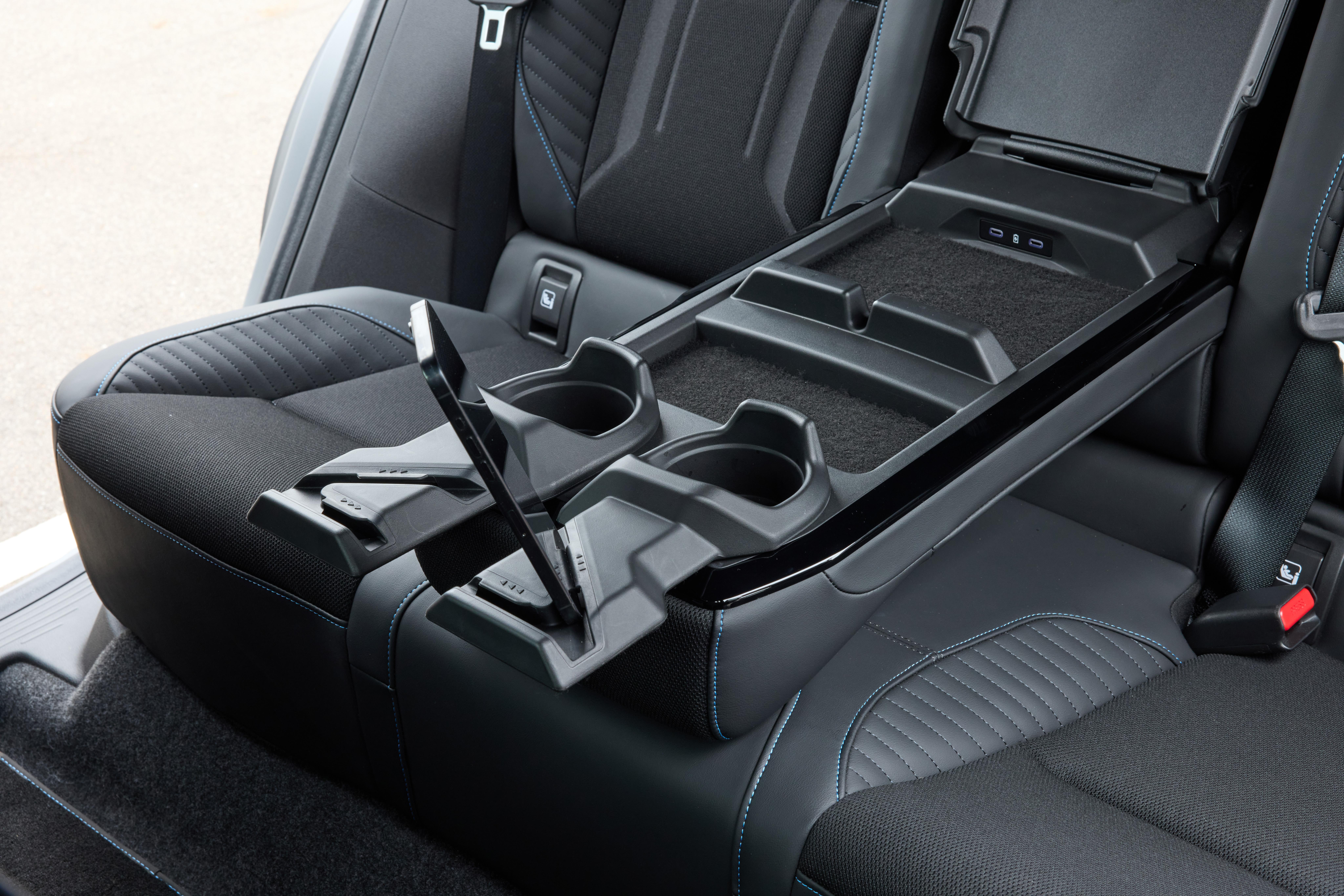 The seats themselves are surprisingly supportive and have backrests with deep cut-outs, which do a better job of holding you in place than in most other SUVs. Amenities aren’t bad either, with dual air vents (but no third climate-control zone) and USB-C ports on the back of the centre console.