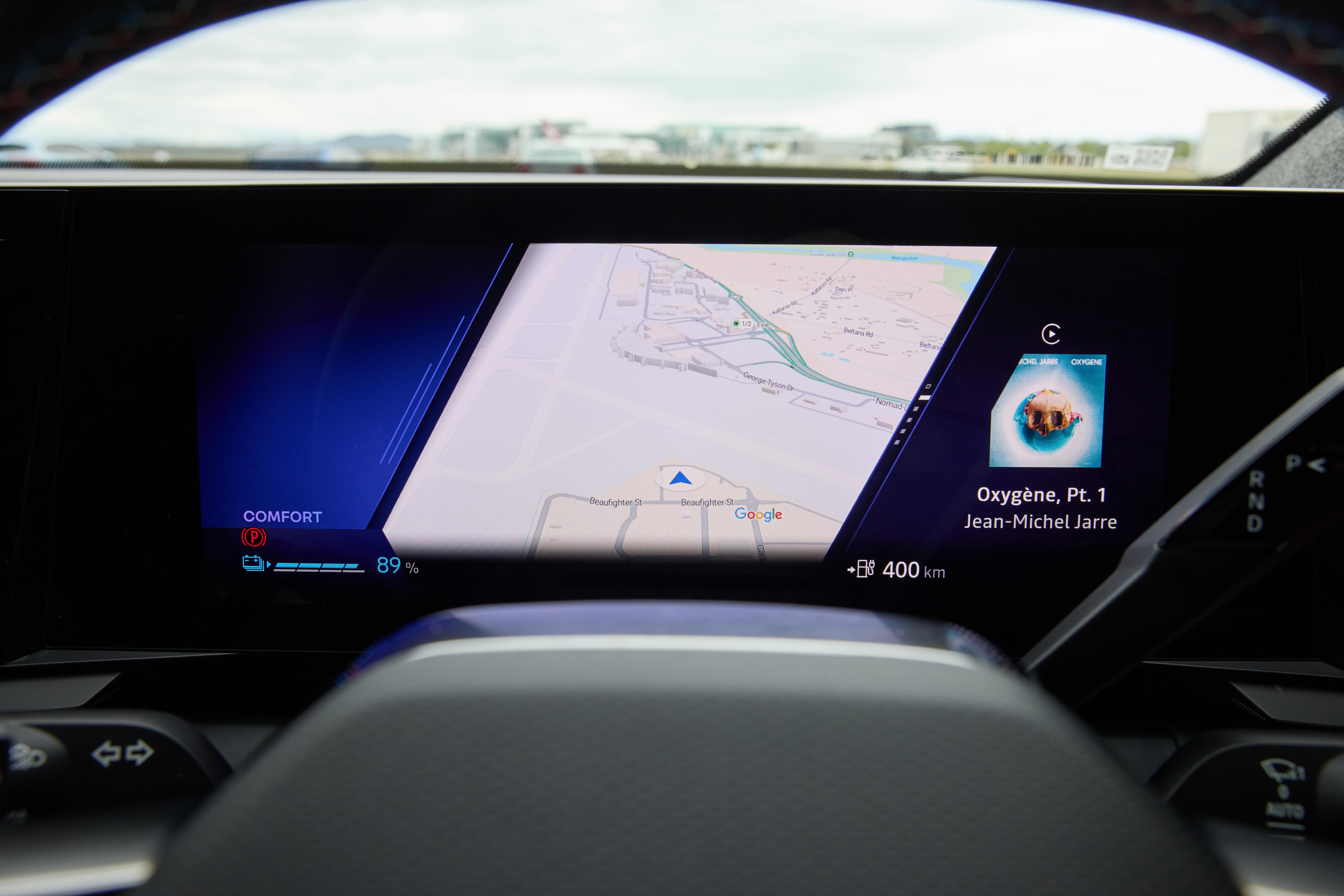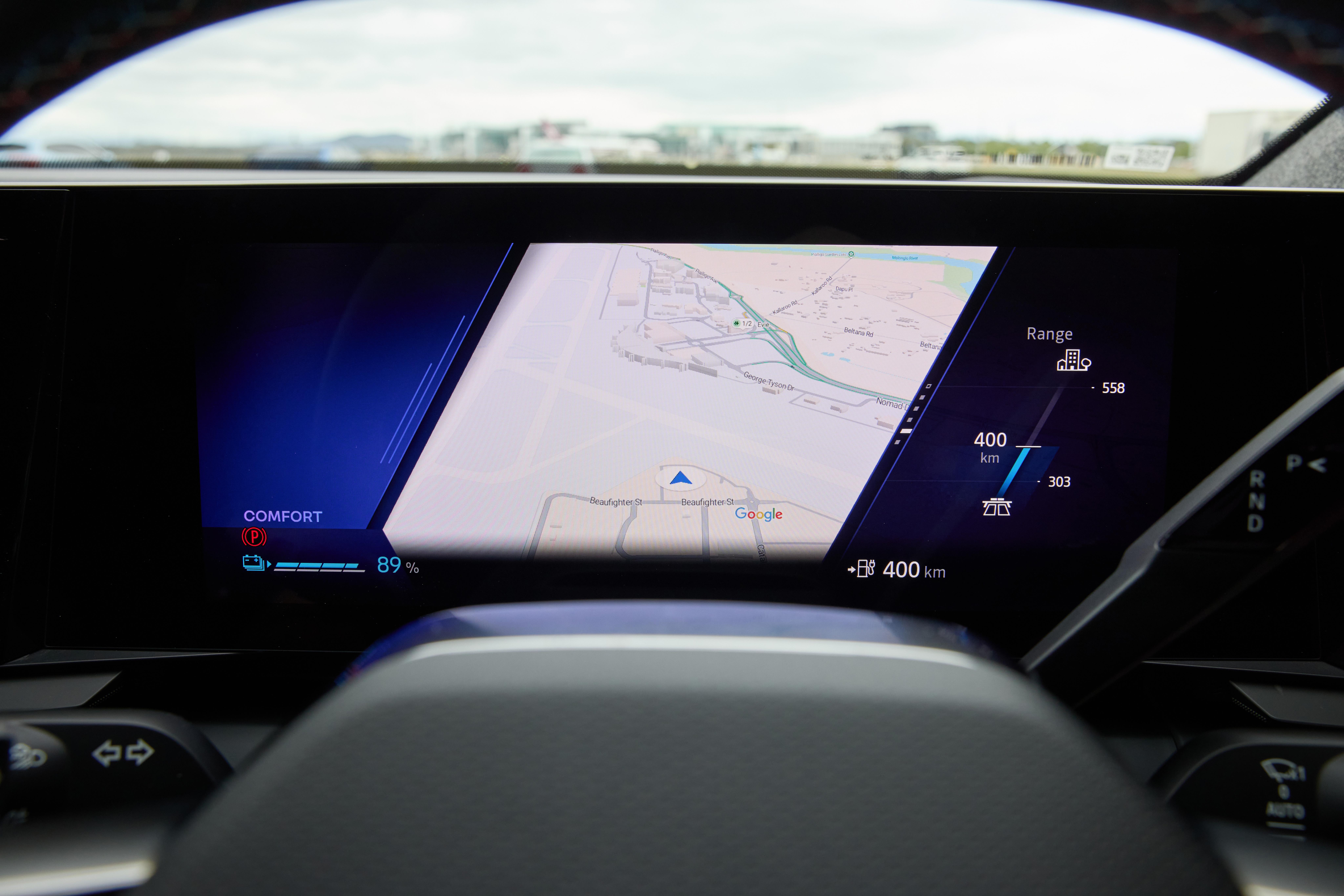 Pressing these buttons will eventually reveal the instrument display’s configurability. We quite like its style, and there are multiple looks with different info displays to scroll through, including navigation via the car’s built-in Google functionality.