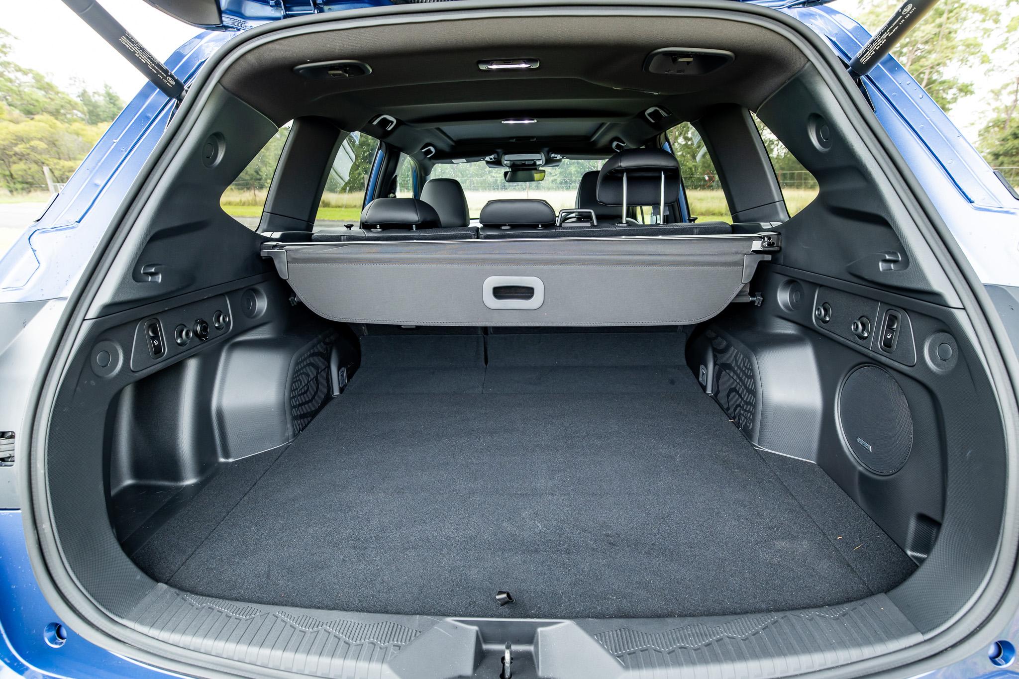 There are two shopping bag hooks on either side of the load space, 12-volt power, rear seat triggers for easy deployment, and even a couple of item hooks overhead as well, meaning you could possibly hang wet clothes up at the back windowline. There’s an overhead light, too.
