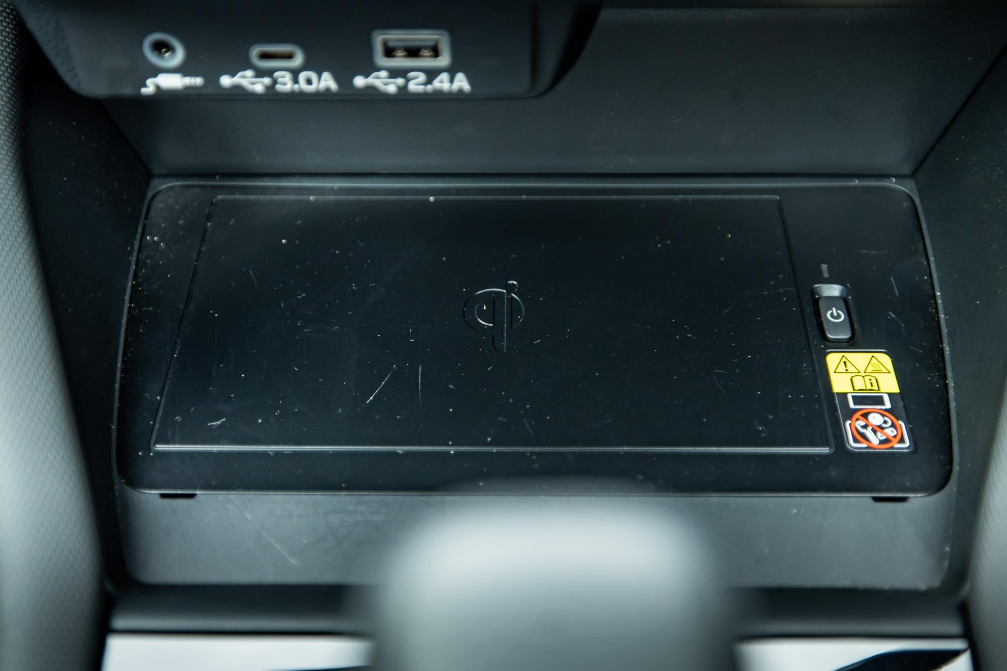 Keeping the kids happy are directional air vents, plus USB-A and USB-C ports, but this one doesn’t come with heated rear outboard seats, despite there being blank plates in the back telling you what you’re missing out on.