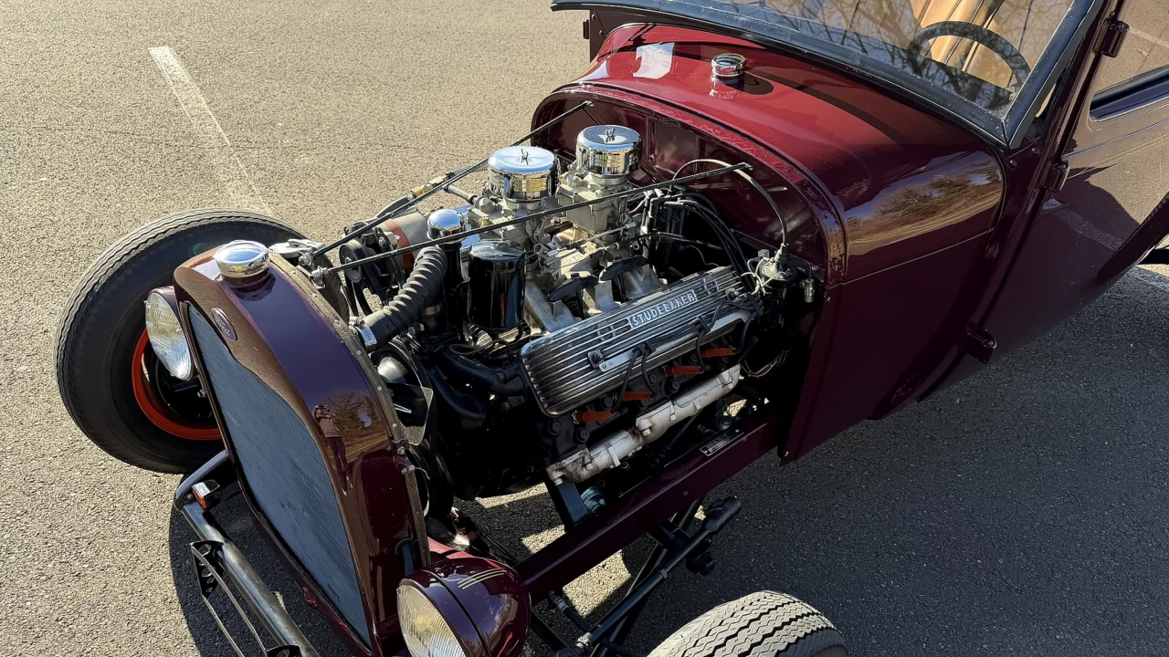 Another attribute that makes this car stand out is its powertrain. In place of the original engine is a Studebaker 232ci flathead V8 mated to a three-speed manual transmission and a 1939 Ford “Quick Change” rear end. Dual two-barrel carburetors and an electric fan help bring it all together for optimal running and driving condition.