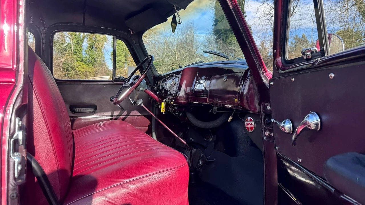 Right now on AutoHunter, you can find this 1954 GMC 100 five-window pickup, which is powered by a 228ci inline-six paired with a four-speed manual transmission. Finished in Burgundy Metallic over a burgundy vinyl interior, this half-ton truck from GMC’s New Design era is now offered by the selling dealer in Oregon with a clear title.