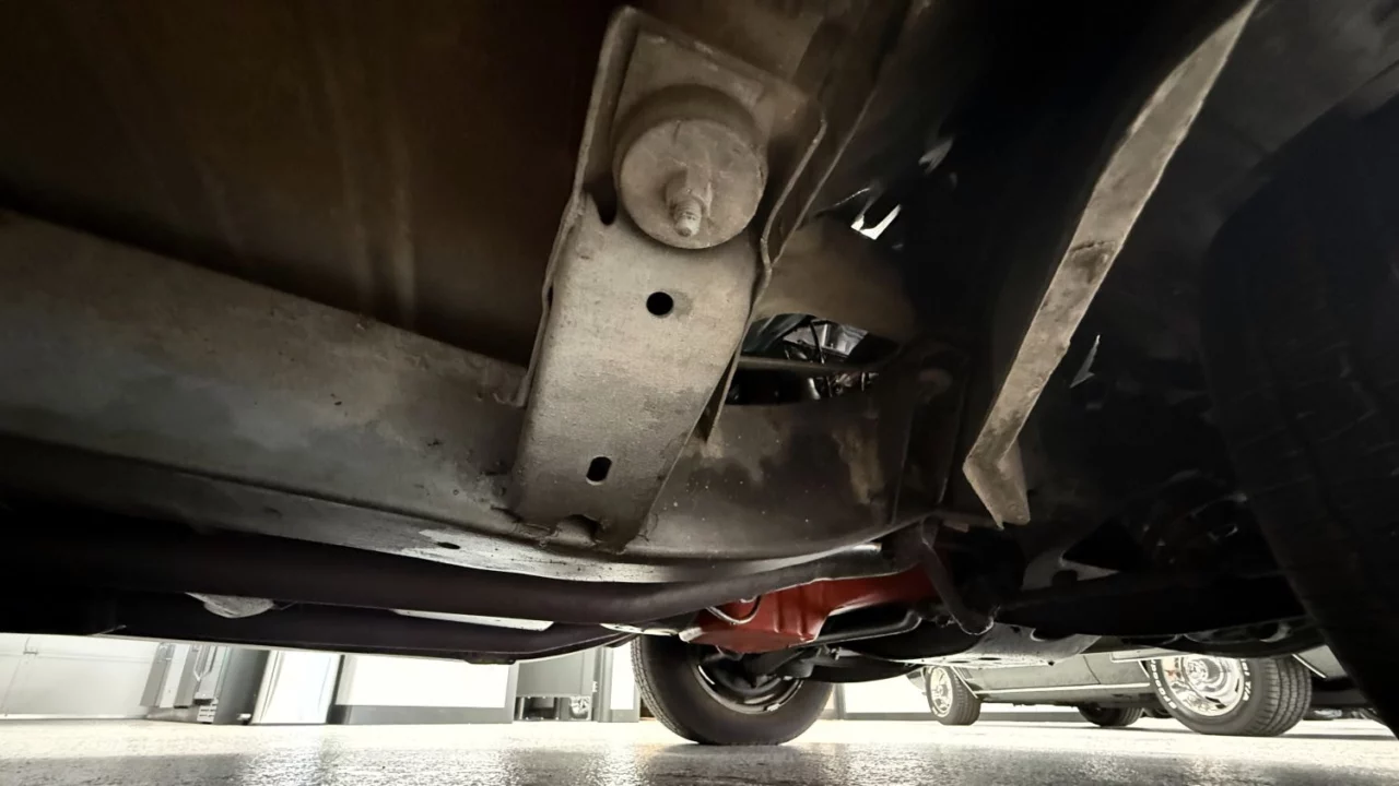 The body is painted in turquoise and is complemented with a white top — it looks to be Tropical Turquoise and India Ivory, or close to that. Other features include bumperettes, rocker trim, anodized gold emblems, front antenna, back-up lamps, and chrome and silver longitudinal trim, among other items. A set of 15-inch Cragar wheels (with Cal Chrome center caps) are wrapped in BFGoodrich Radial T/A tires, 215/65 front and 245/60 rear.