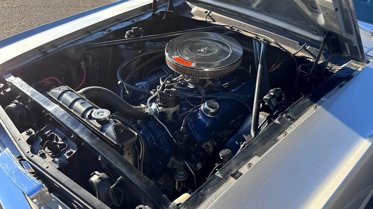 See that “C” in the VIN? That means there’s a C-code Challenger 289ci V8 with a two-barrel carburetor under the hood. Running 9.3:1 compression, it was factory-rated for 200 horsepower. A Cruise-O-Matic three-speed auto sends its output to the 2.80 rear end. When this pony car needs to slow down, manual brakes help it stop galloping.