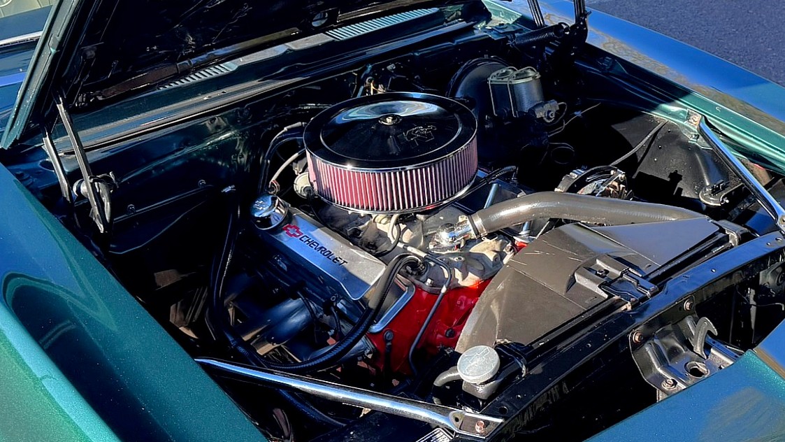 Powering this Camaro is the reportedly numbers-matching 327 small-block with a four-barrel carburetor. The 275-horsepower V-8 also features aftermarket valve covers, headers, and air cleaner. Shifting is handled by a TH400 three-speed automatic transmission.