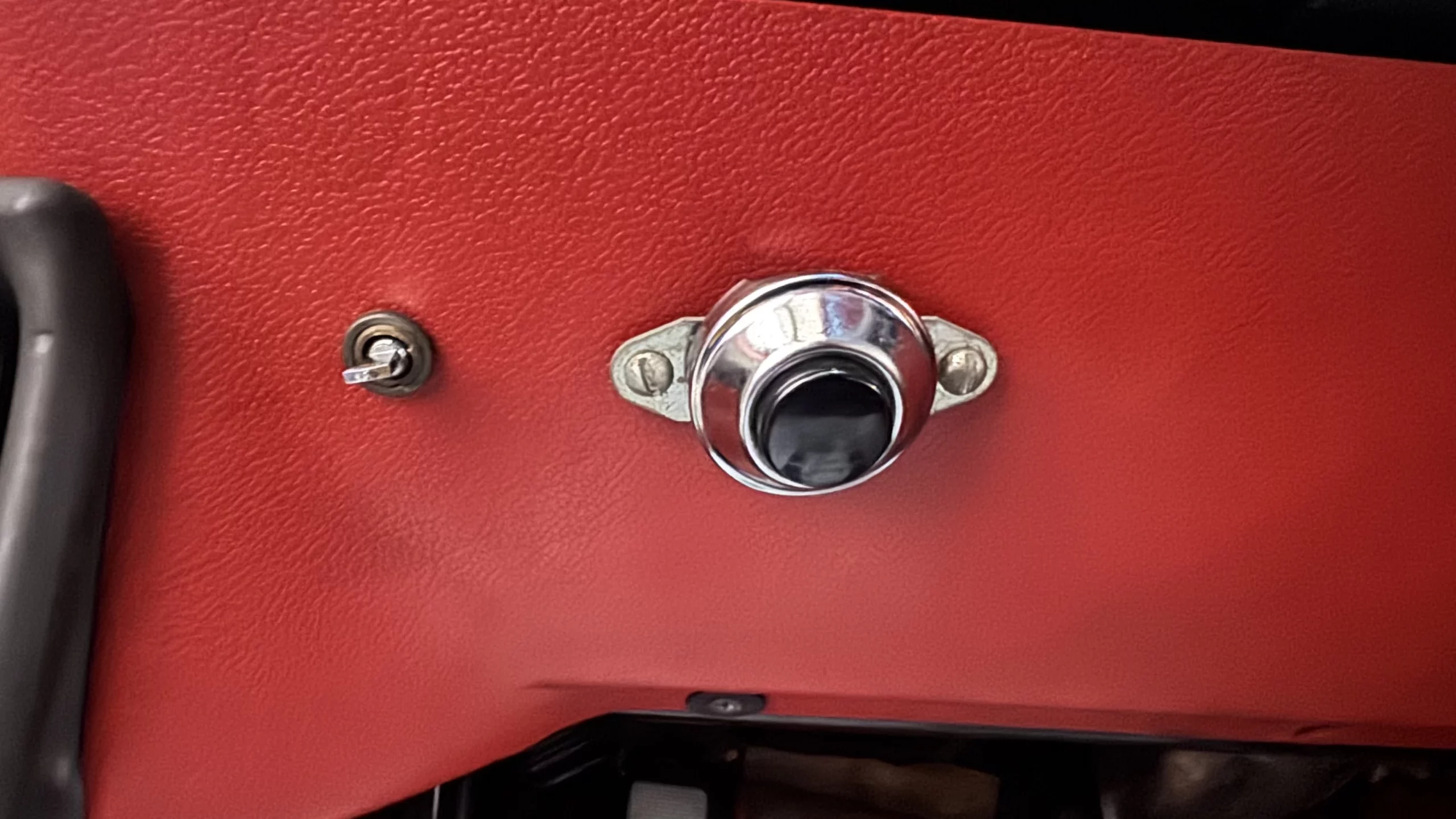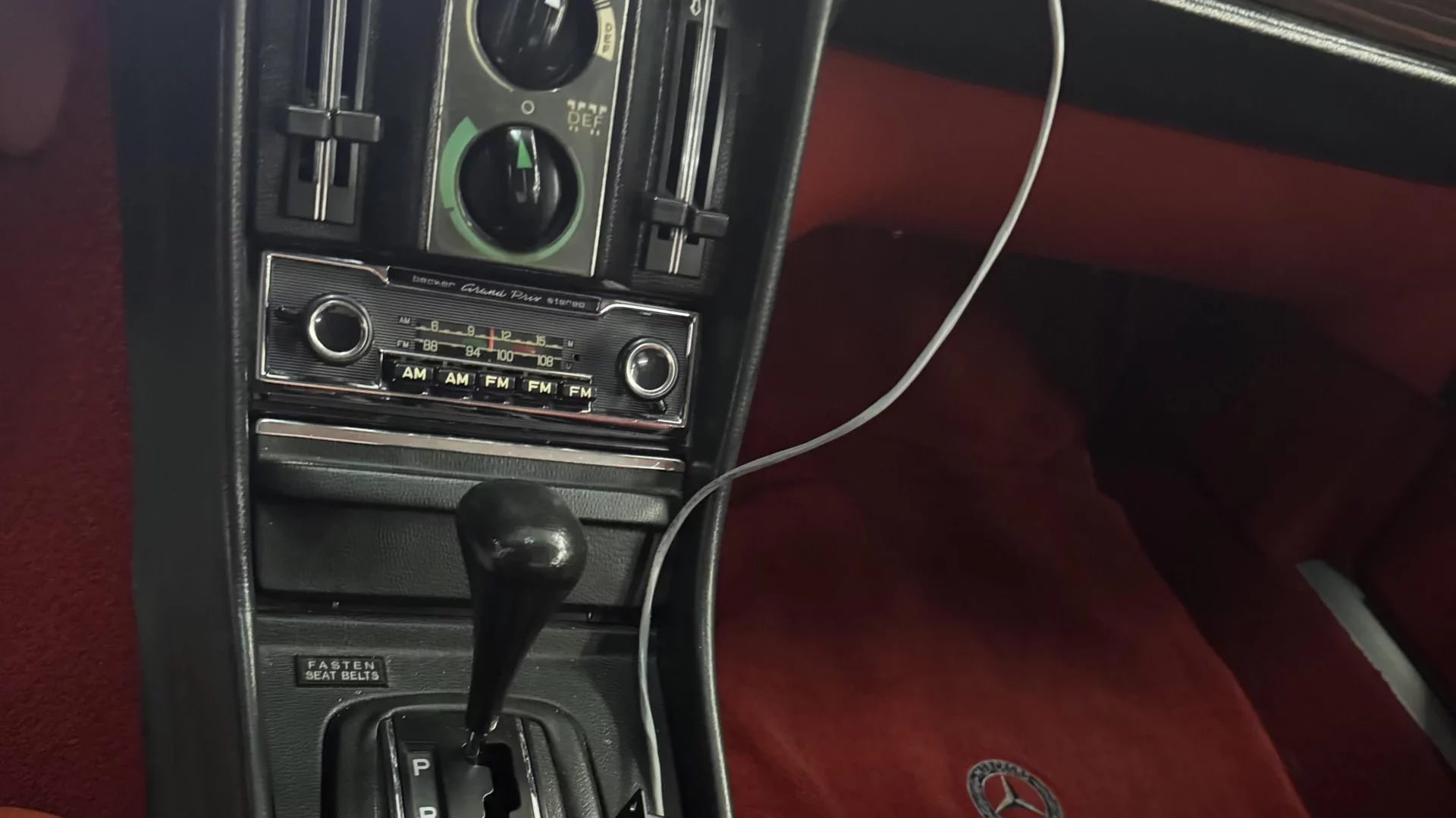 If anything, the interior looks even better than the exterior, with the contrasting red leather being the perfect color choice for a white car. I see no wear anyplace, and the car still has its original Becker radio. The only flaw I could detect was the weird addition of an aftermarket horn button. Personally, I would do away with this immediately.