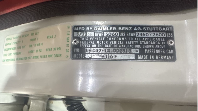 The odometer shows 28,677 miles at the time of listing, but the title states the car is mileage-exempt. Based on the condition of this 450SE, that could well be original miles; I would reach out to the dealer for more info. I would also ask what work had been done and whether the car still has its original paint and interior. If it does, that only adds to its desirability. Judging by condition of the body tag (pictured below), with no overspray of any kind, makes me think this could well be great example of an all-original W116 S-Class.