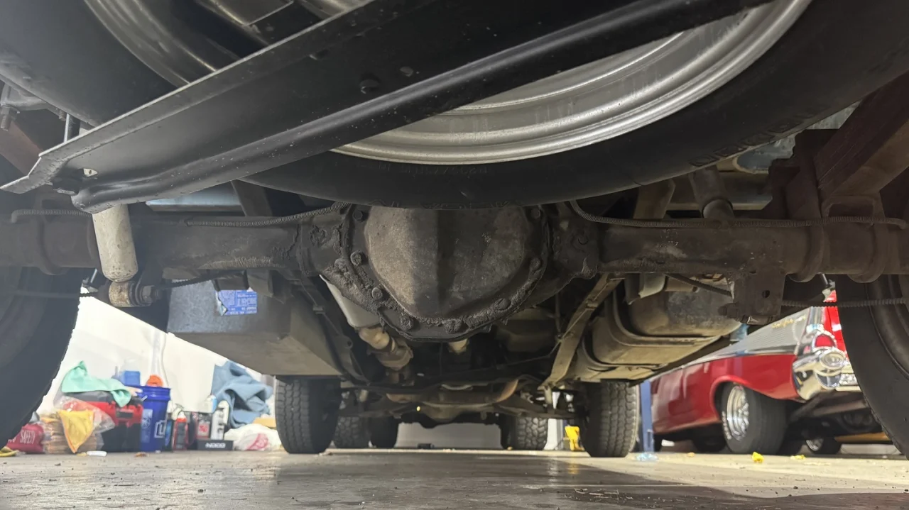 This truck came from the factory with a front stabilizer bar and heavy-duty rear springs. A 15-gallon auxiliary fuel tank, which features its own fuel door, has been added. The manual front disc and rear drum brakes help make sure this rig can keep on truckin’.