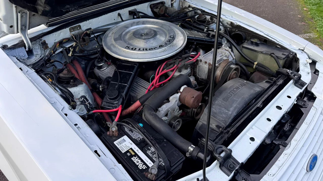 Under the hood is just as nice, with the engine compartment looking both clean and unmodified. The 175-horsepower 5-liter V8 looks excellent, and the car is fueled by its original four-barrel carburetor.