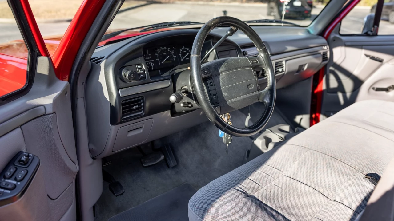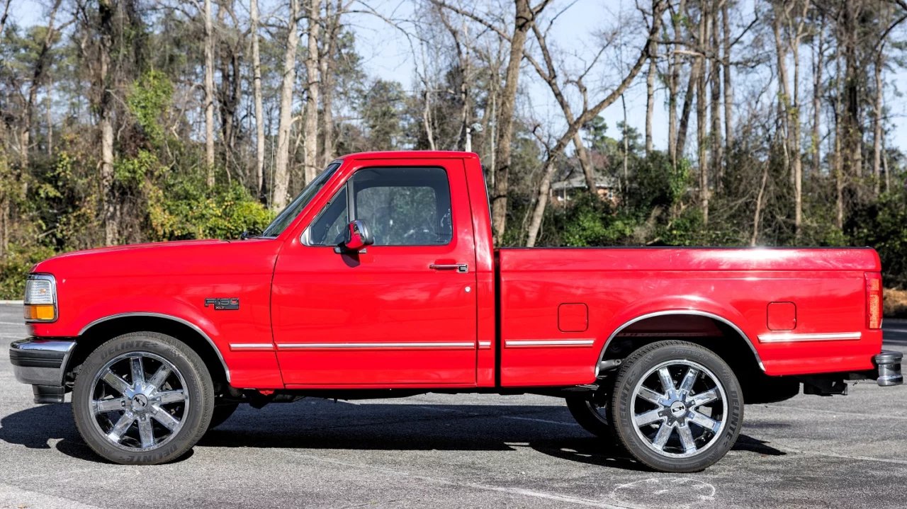 Right now on AutoHunter, you can find this 1995 Ford F-150 XLT Regular Cab, which is powered by a 5.0-liter V8 paired with a four-speed automatic transmission with overdrive. Highlights include power windows and air conditioning. Finished in Vermillion Red over an Opal Grey cloth interior, this two-wheel-drive, short-bed pickup is now offered by the private seller in South Carolina with the original owner’s manual, a clean AutoCheck report, and clear title.