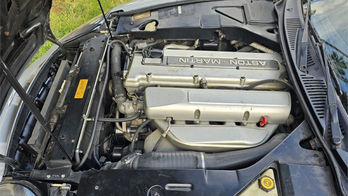 Up front is a Jaguar-derived 3.2-liter supercharged DOHC inline-six mated to a 4L80-E four-speed automatic transmission. Aston Martin rated the engine at 335 horsepower and 361 lb-ft of torque when new. One unique thing about the DB7 was that each engine was hand-assembled, receiving a placard noting the vehicle number and inspector’s name. This car is identified with the sequence 1*604, which aligns with its VIN. Final assembly was performed by someone named Steve Gray.
