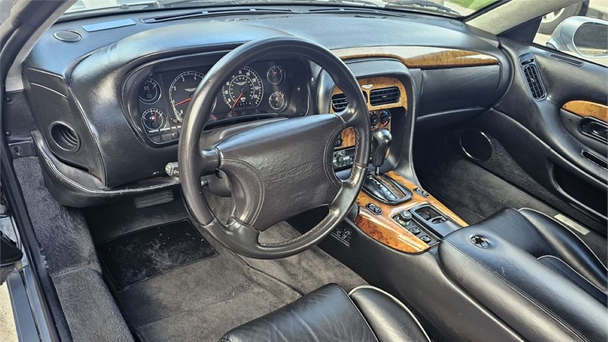 No luxury car would be complete without a few creature comforts. The four-passenger cabin of the DB7 has wood veneer, dual-zone automatic climate control, and power convenience options throughout. An aftermarket AM/FM cassette stereo has been added, but the rest of the cabin appears original.