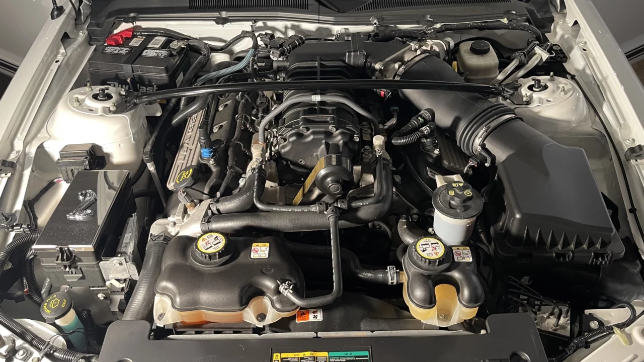 The key to the GT500’s success was found under its hood. The 5.4-liter V8 was part of Ford’s “Modular” series of engines, and each one had a placard that said “Hand-Built with Pride” and featured the signature of the individual who performed final assembly. The engine used an iron block, aluminum cylinder heads, a forged steel crankshaft, a dual 60mm electronic throttle body, and a nine-psi Eaton supercharger. On paper, it was impressive engineering; in practice, it worked well. The car could sprint to 60 mph in only about four seconds.