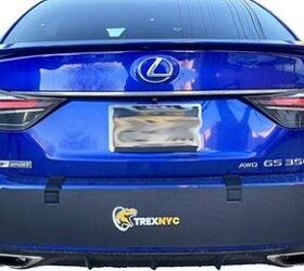 The Bumper Thumper (chuckle) attaches to the bumper’s leading edges, just like the rear unit described above, then goes hooked to the front license plate. Drive in a location that doesn’t require front plates? Good for you. The company recommends a separate license plate protector upon which a person can hook the Bumper Thumper. That particular unit gives the car an unfortunate overbite, but hey – you’re already required to mount a front plate so you might as well go 10/10 on the ugly factor.
