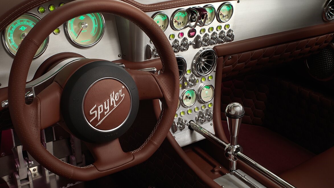 Three quarters of a century later, the Dutch automaker was resurrected as the creator of dramatic, flamboyant, mid-engine exotics with Audi power. One of its signature design elements is the exposed mechanical hardware for the available six-speed manual gearbox, as seen here in the supercharged Spyker C8 Preliator.