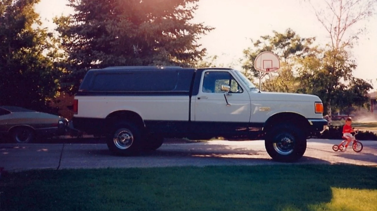 And here’s a picture of dad’s F-250, again with the Gran Torino Sport hiding out back in the same parking space.
