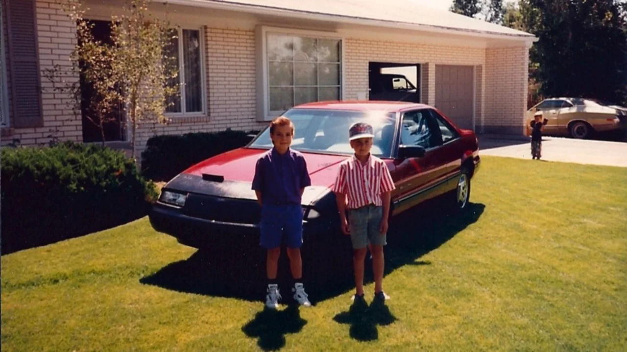 The below pic shows our family’s freshly-detailed 1989 Pontiac Grand Prix (Mom’s car) with Slimer in the background. That’s me at left in the purple sporting period-correct high-tops.