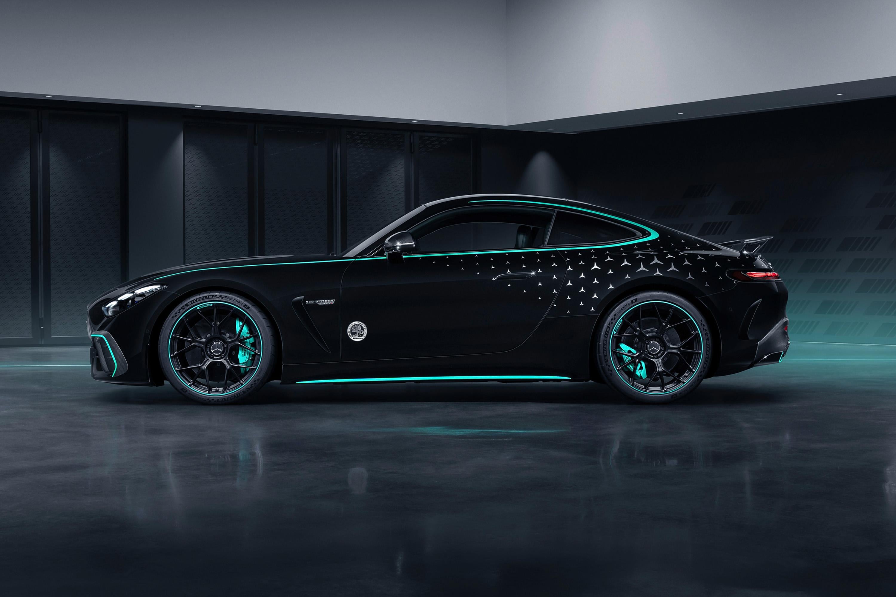 The Petronas green paintwork has been applied to the 21-inch wheels, which are fitted with Michelin semi-slick Pilot Sport Cup 2 R tyres, as well as the glasshouse surrounds and the front and rear bumpers.