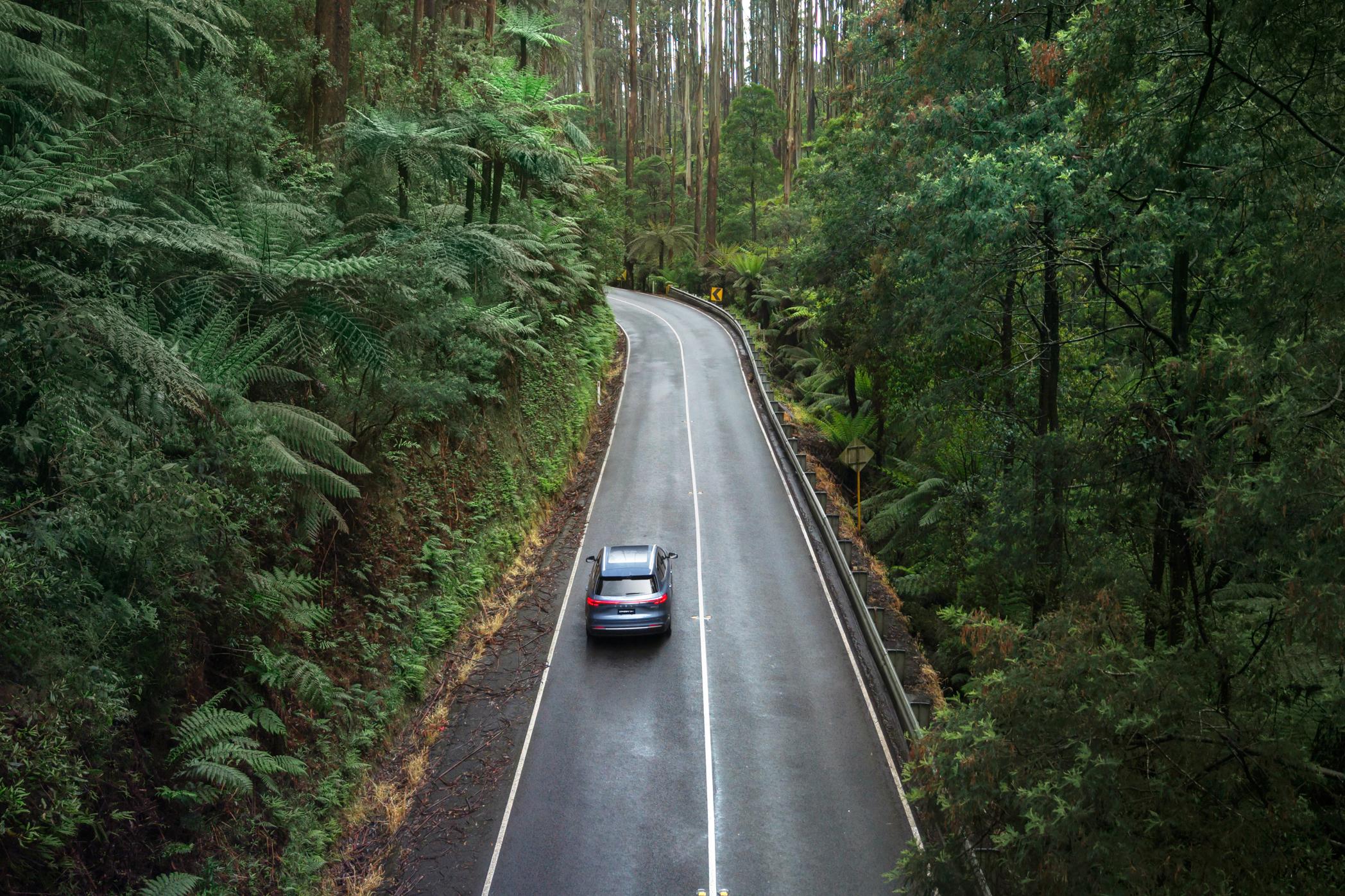Through Gippsland’s rolling hills: Plenty of opportunities for the car to regenerate energy on descents, storing power for later sections.