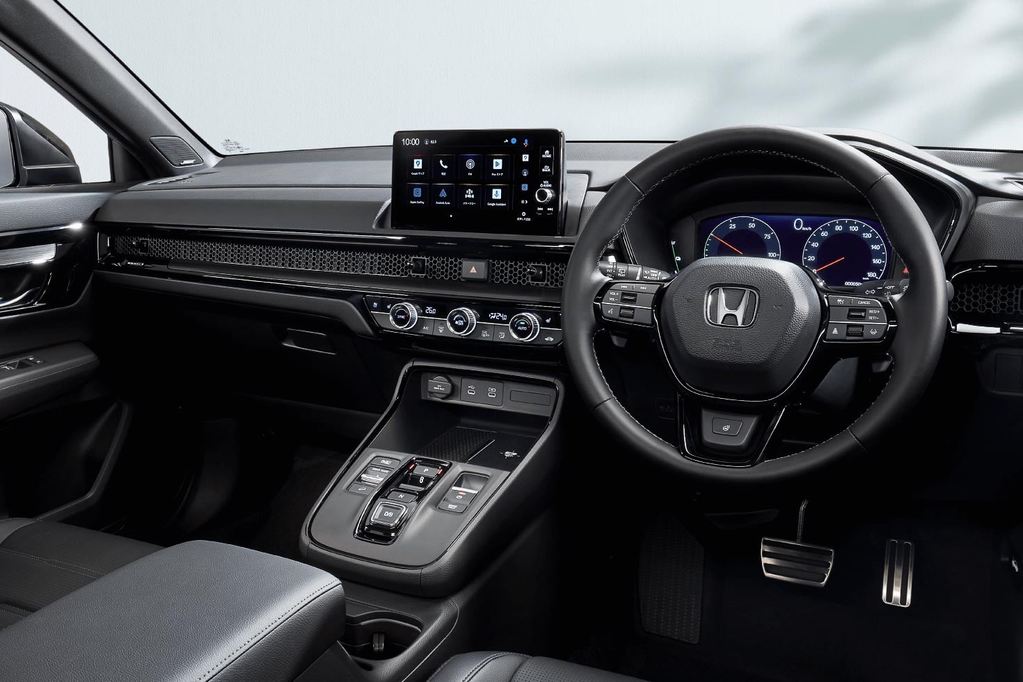 At launch, the CR-V will be released in Japan in high-spec e:HEV RS and e:HEV RS Black Edition trim levels, with both offering the real-time all-wheel drive hybrid drivetrain promised for Australia in 2026.