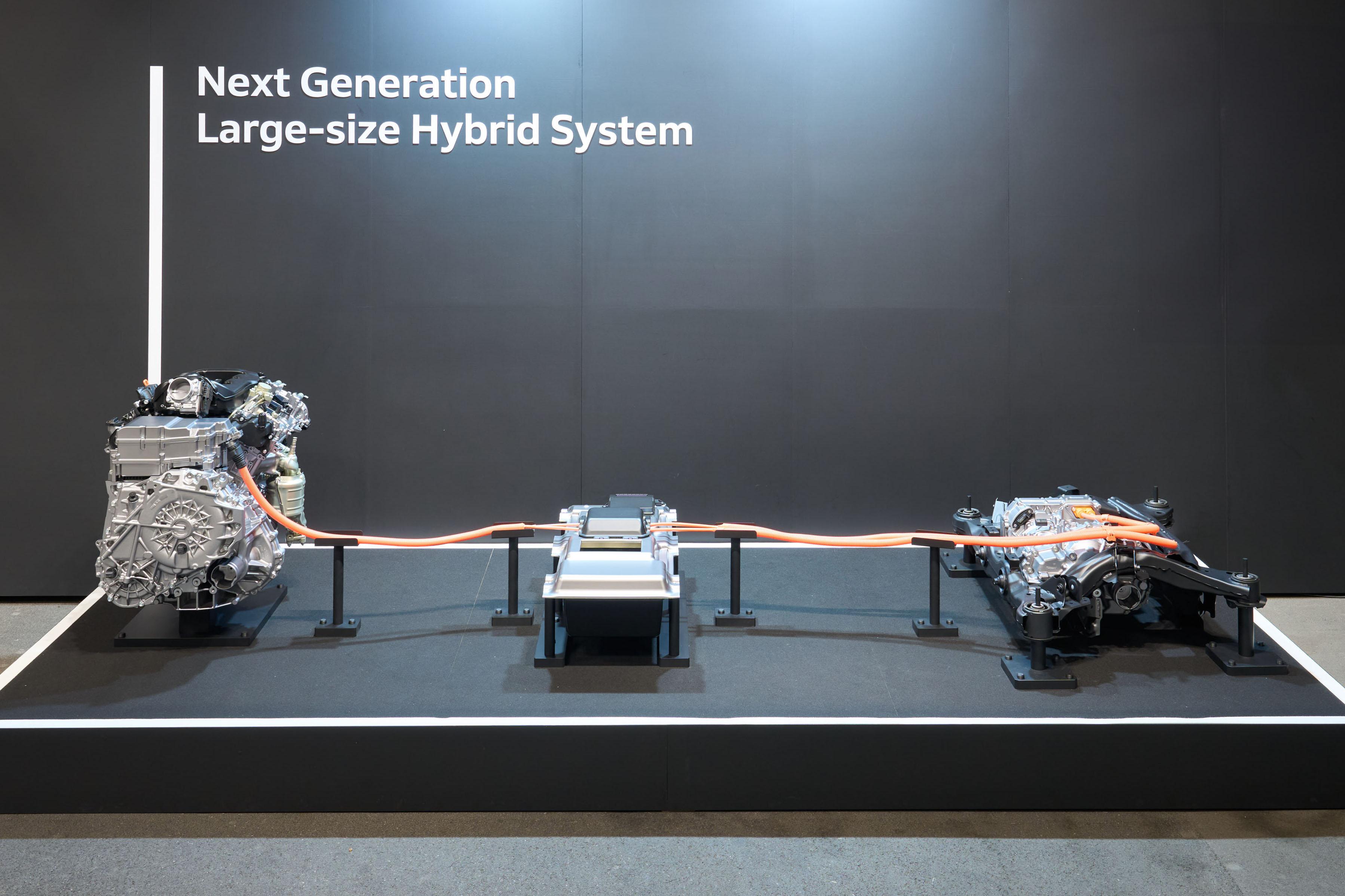 On a display stand was the ‘Next Generation Large-size Hybrid System’ – a newly-developed V6 engine mated to Honda’s e:HEV system and an e-axle at the rear.