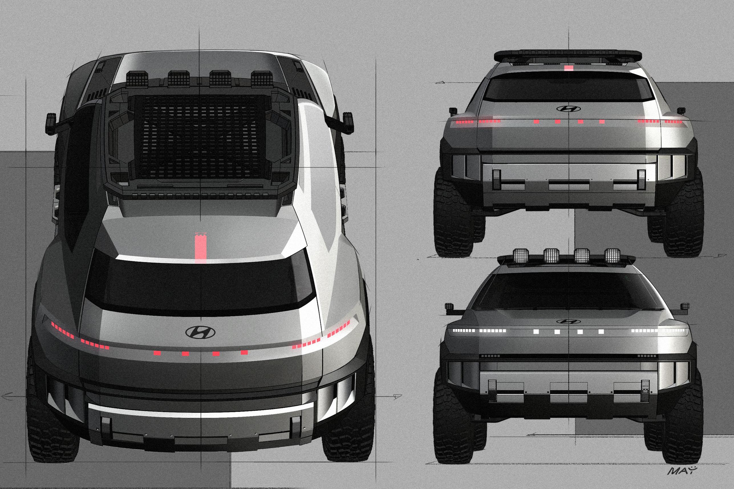 The hardcore Hyundai Crater concept has been teased in sketch form ahead of its world debut at AutoMobility LA 2025 in Los Angeles this Thursday (4:45am AEDT on November 21).