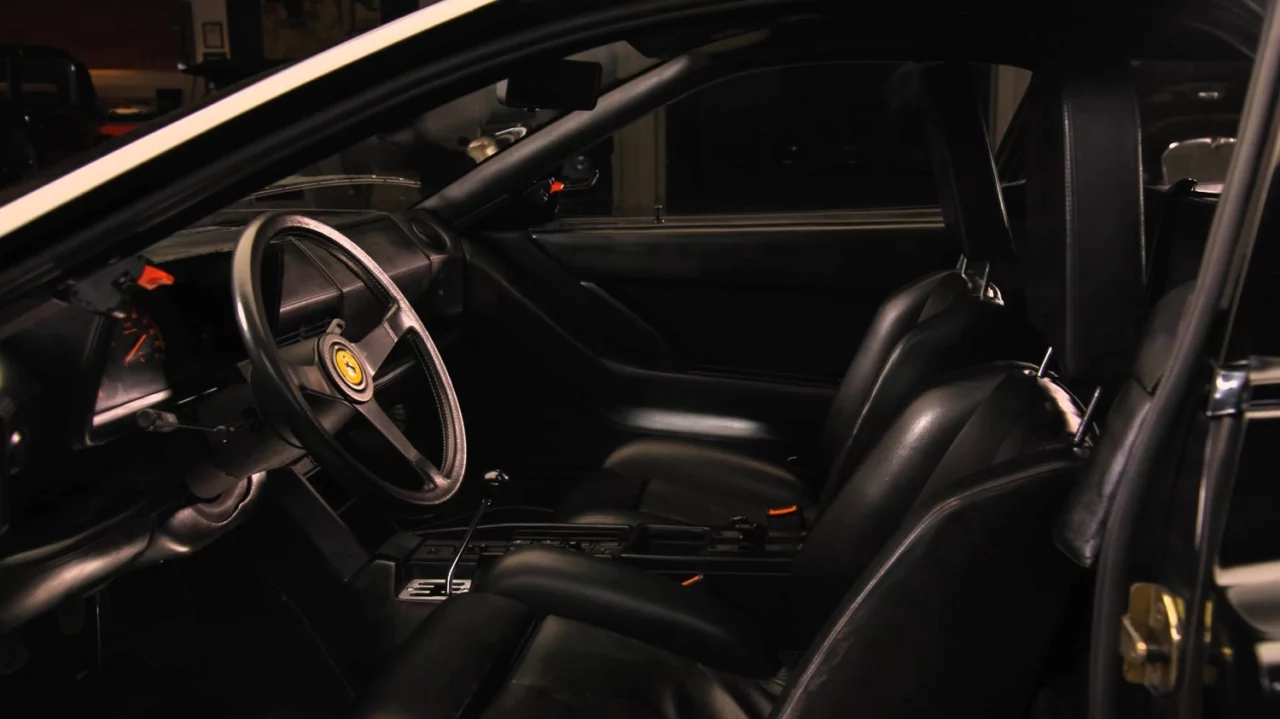Despite its dormancy, the Testarossa aged well. The black paint is mostly original and the matching black full-leather interior (including the headliner!) appears to be in fantastic shape.