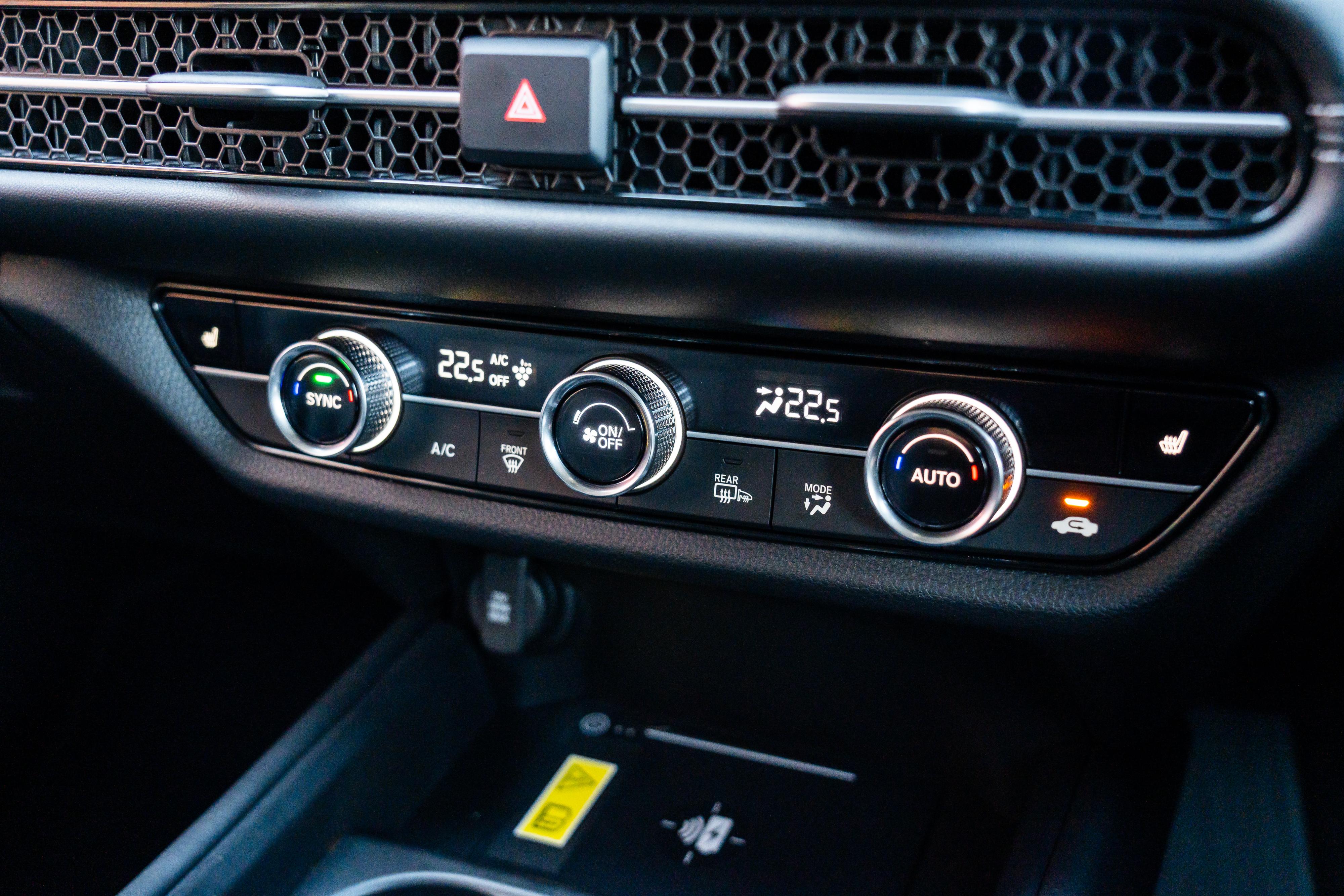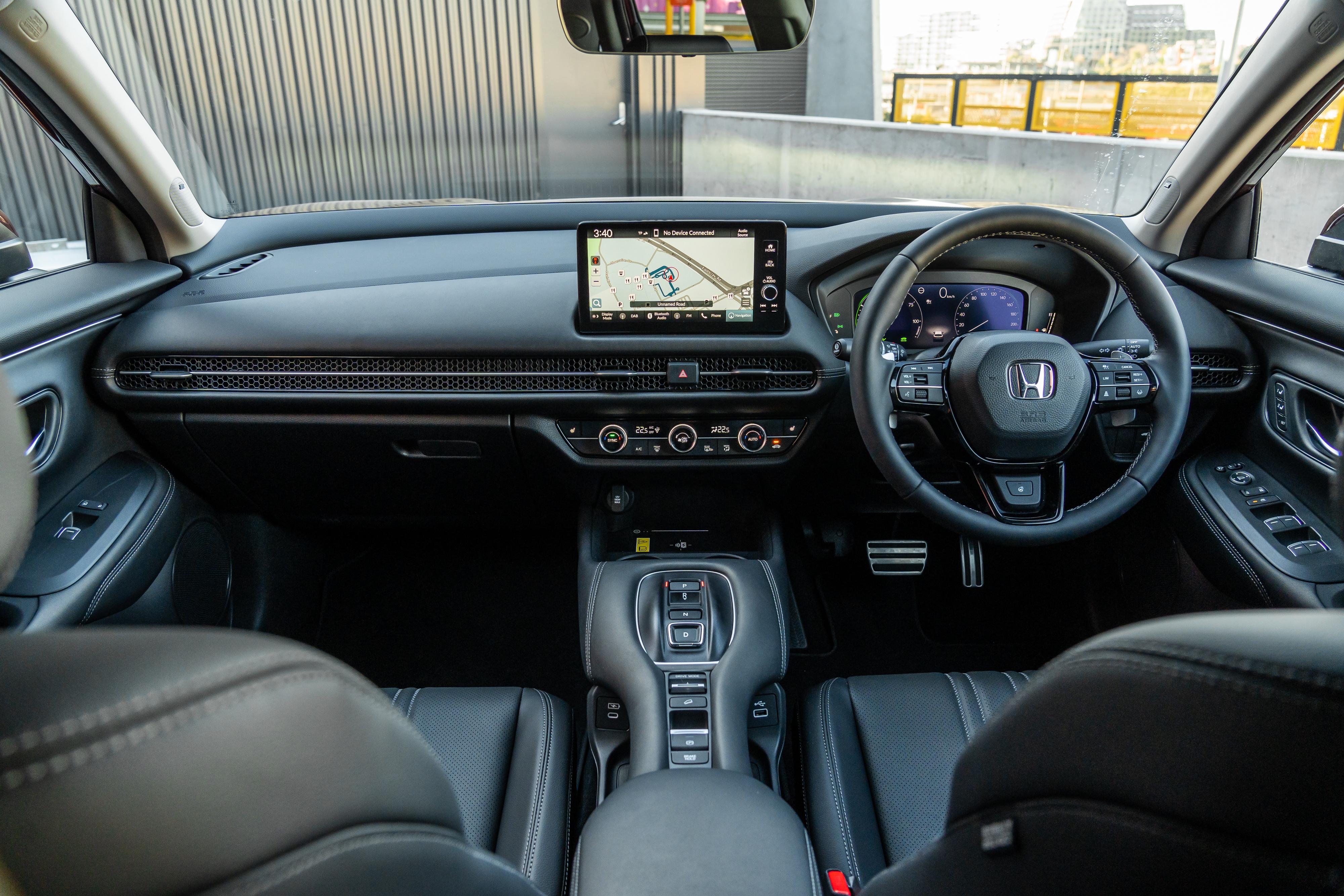 Standard equipment in all variants includes a twin digital screen setup comprising a 10.2-inch instrument cluster and a 9.0-inch infotainment touchscreen with wireless Apple CarPlay, Android Auto, and DAB+ digital radio, plus dual-zone climate control and the full suite of Honda Sensing active safety systems.
