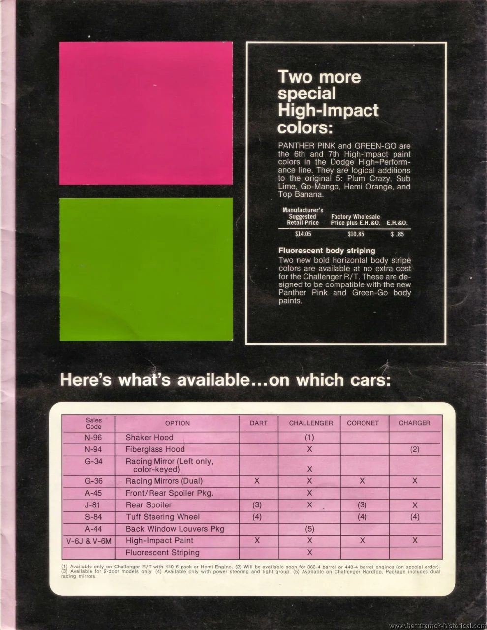 The postwar automotive market in the United States is full of spring marketing efforts to give sales a kick in the rear. When it comes to Plymouth and Dodge, one of the most famous features introduced in the spring was the pair of colors that are quite rare: FM3 and FJ6.