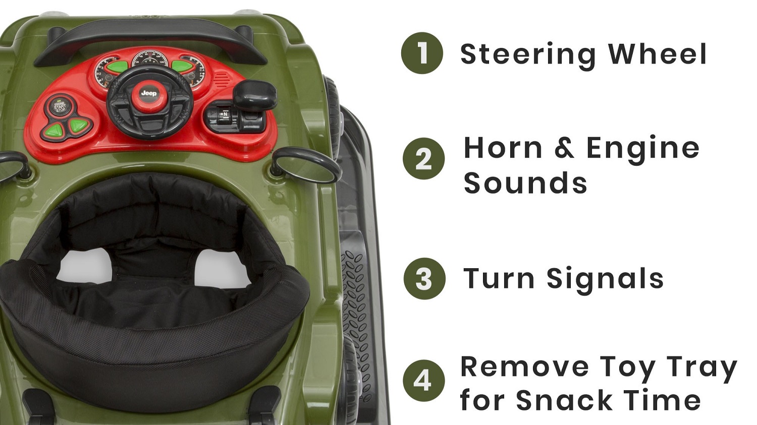 Oddly enough, I have to credit my wife Eli for Hayden’s little off-roader. A few months ago, she was looking for walkers and texted me the links to several options, one of which was the Wrangler. Of course, I picked that—in Anniversary Green for a touch of heritage. As its name implies, it can be used three different ways. Right now, we place Hayden in it so he can use it as a sort of training wheels for walking on his own. An adjustable handle bar on the back allows him to push the Jeep and work on his balance and coordination. We haven’t removed the body from the base to use it as a rolling toy box yet, but that day is coming soon.