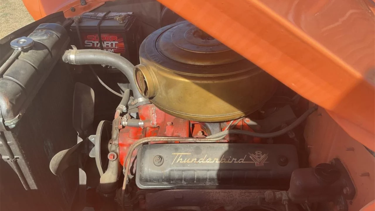 Under the hood is a “Thunderbird” V-8 of undisclosed displacement, but it could be a 292ci or a larger 312ci. The seller says the car runs well, and the engine and transmission are in good condition. The odometer shows 78,600 miles.