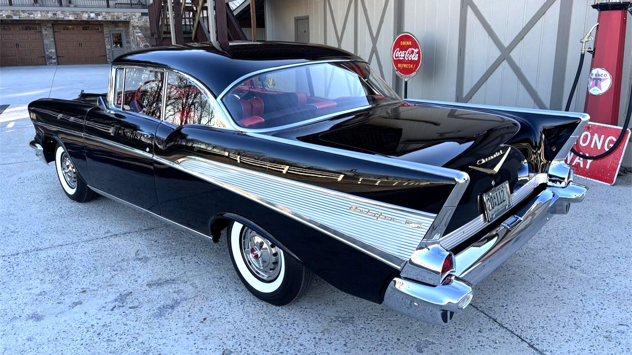 This award-winning Onyx Black 1957 Chevrolet Bel Air Sport Coupe flaunts everything that has made it America’s Sweetheart of the collectible car world. “This outstanding car just won Best Restored, First in Class, Best Interior, and Best Engine at the 2026 World of Wheels, Chattanooga, Tennessee,” says the seller. “It has the original matching-numbers 283 Power Pack engine, 3-speed manual transmission, and rear end. Also, T3 headlights, dual side-view mirror, radio, rear-mounted antenna, stainless exhaust, 14-inch 800 bias-ply tires with correct ‘57 spinner hubcaps, and original spare and jack.”
