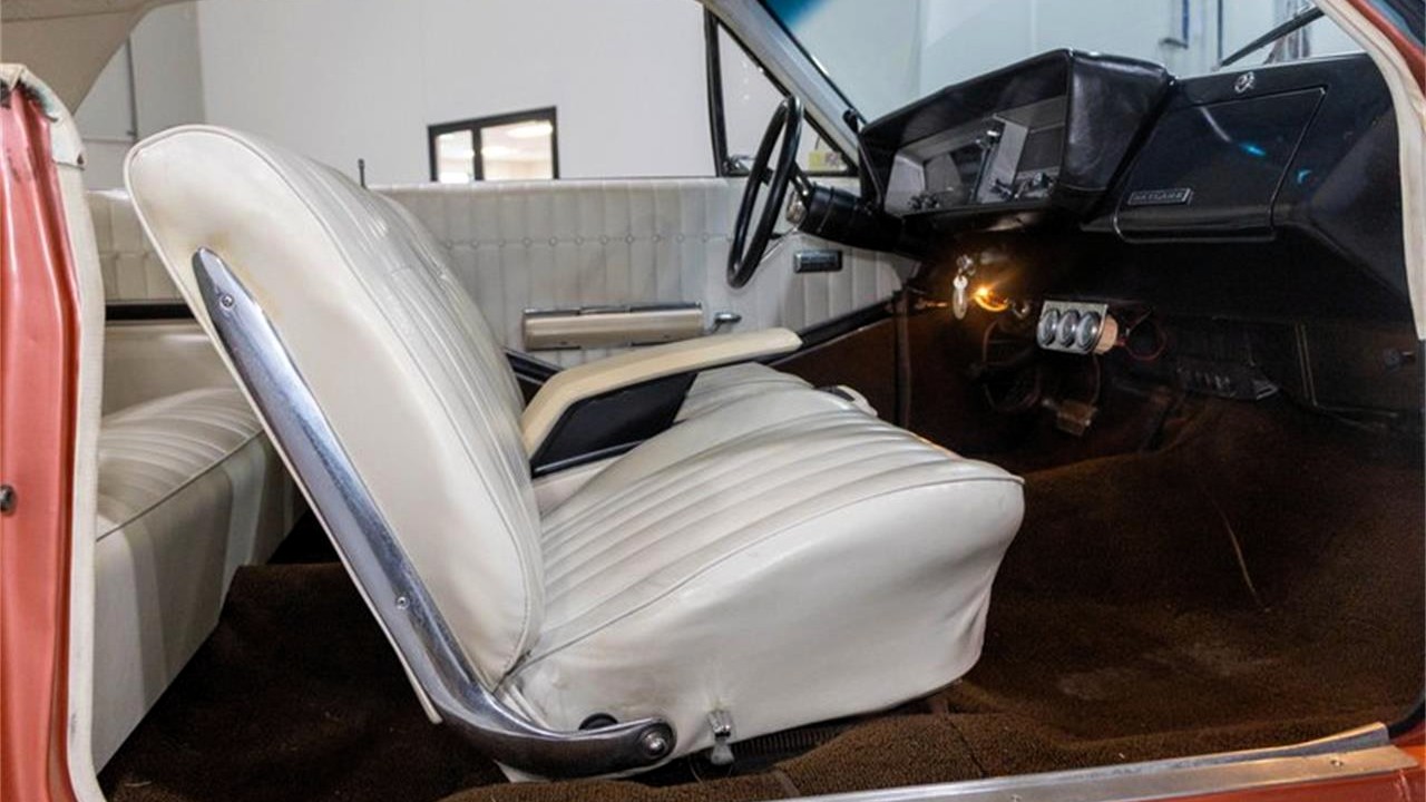 This Coral Mist 1964 Buick Skylark Sport Coupe is a fine example of the charms offered to mid-size Buick customers. Aside from the unique powerplants available (in this case, the 300ci V-8, though carburetion is unspecified), what distinguishes this car from other Specials (if not Chevelles, Tempests, and F-85s) is the interesting two-toning on the roof courtesy of a unique vinyl top treatment. There is a certain halo effect, much like some vinyl tops later in the decade, though the contrast avoids the C-pillars and continues down to the bottom of the blacklite. It’s quite a nice styling feature that gives upscale vibes, befitting Buick’s role in General Motors’ hierarchy. Like most Skylarks, a two-speed Super Turbine 300 automatic handles the shifting chores. “Equipped with power steering and power brakes, this Skylark is easy to drive and well-suited for cruising or weekend shows,” says the seller. “Inside, the car retains its original white interior, which adds to the authenticity and charm of this classic.” Note the power windows, consolette, and aftermarket American Racing Torq Thrust mags.