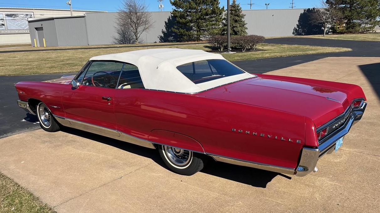 The 1965 Pontiac Bonneville is not the most desirable collectible for that year, but it’s not for lack of trying. It has all the elements to make a strong collectible, but the collectible market has never been accused of being logical. This Montero Red convertible is an awe-inspiring combination of all of Pontiac’s strengths of the 1960s, starting with the 421 HO (though this is a documented 421 four-barrel car), buckets and console, TH400 automatic, air conditioning, power steering and brakes, remote trunk release, Safe-T-Track, AM/FM stereo, and 8-lug wheels. “The original top … works well. Interior is in great condition with new carpet installed about 10 years ago,” says the seller. “Body is straight with no rust.”