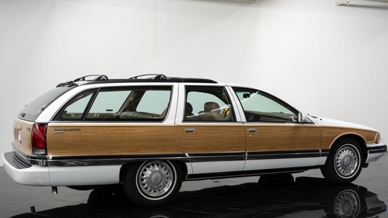 Back when I was a kid in the ’90s, I had no appreciation for cars like the Roadmaster Estate Wagon—European exotics turned my head in those days. As I’ve gotten older and discovered cars from different eras, I’ve grown to love the 1991-1996 Roadmaster Estate Wagon’s sheer Americana. Every time I see one of those big-bodied family haulers with the faux woodgrain panels, it makes me think of a 1990s family sitcom in which everyone piles into the car on a Friday night for pizza and a trip to Blockbuster. Now that I’m a husband and father, I can easily picture myself being the lighthearted dad wheeling a Roadmaster around town for errands and being the captain of the 18-foot land-yacht for out-of-state road trips. The one you see here is the Roadmaster Estate Wagon I always envision during my daydreams: a ’96 Collector’s Edition in Bright White with the Light Colonial Oak “wood” (aka vinyl) appliques and a Light Beige leather interior.